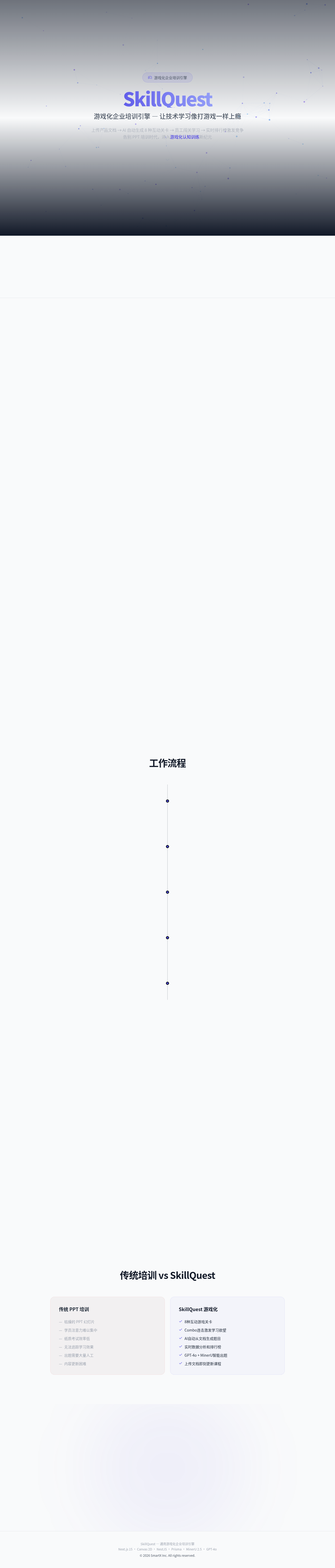 本文档记录 SkillQuest 平台的整体架构、页面路由、类型系统以及重要变更日志。 每次涉及跨文件、跨模块的改动,都应在本文档「变更日志」章节追加记录,防止遗漏。