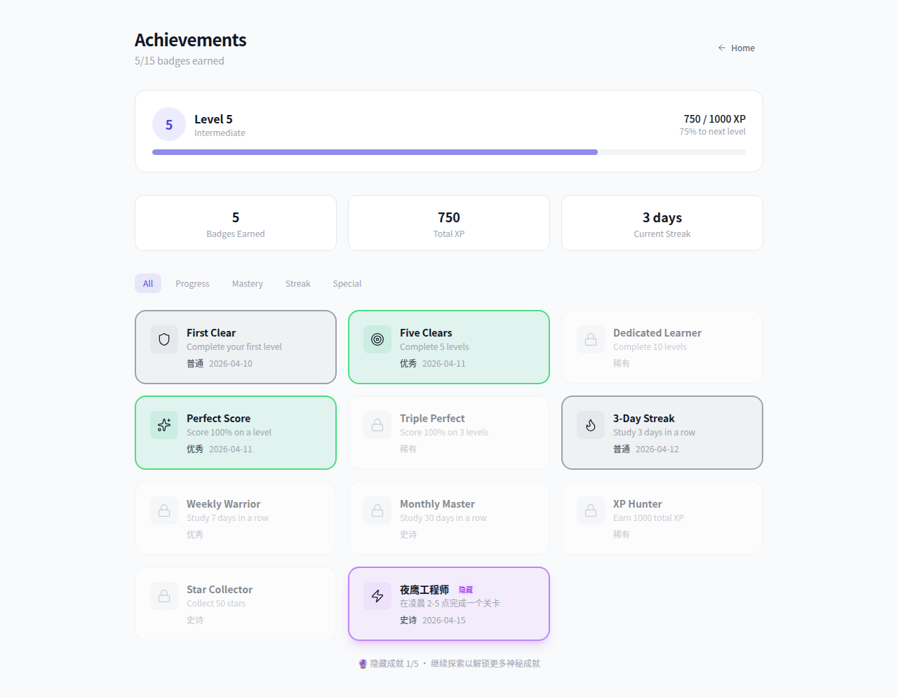 | /achievements | app/achievements/page.tsx | 成就系统 |
