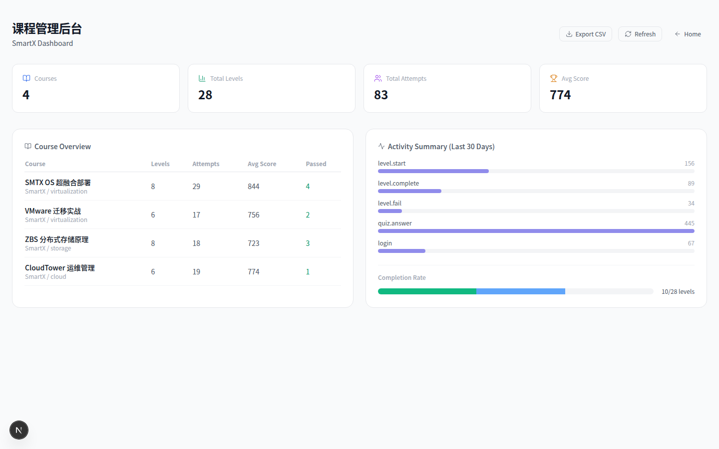 /)/login)/register)/setup-vendor)/dashboard)/map)/leaderboard)/achievements)/profile)/analytics)/learning-path)/level/1)/results)/replay)/courses)/admin/dashboard)/admin/review)/admin/analytics)/admin/users)/admin/partners)/admin/courses)/courses/agency)/showcase)/data-gravity)定位变更:原为独立物理仿真 Demo,现已作为 ZBS 分布式存储关卡 (l2) 的前置互动预习页面。 所有 UI 术语已改为 ZBS 知识点语义(副本锚定、网络隔离、节点故障注入等),详见
